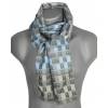 Écharpe en twill de soie bleue et grise, imprimée La Joconde de Léonard de Vinci
