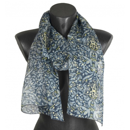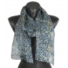 Foulard 160x30 en mousseline de soie, imprimé fleurs grises, fabriqué en France
